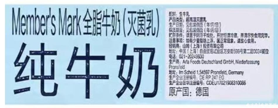 商品信息显示,同款产品经销商为山姆(上海)投资有限公司,生产商为Arla Foods Deutschland GmbH,Niederlassung Pronsfeld,原产国为德国。